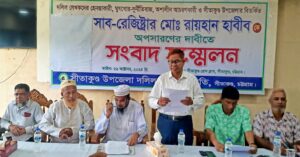 সীতাকুণ্ড সাব-রেজিষ্টার অপসারণের দাবীতে সংবাদ সম্মেলন