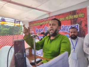 বিক্ষোভ সমাবেশে প্রধান বক্তা হিসেবে বক্তব্য রাখছেন উত্তর জেলা সাংগঠনিক সম্পাদক আনোয়ার সিদ্দিক চৌধুরী।[/caption]