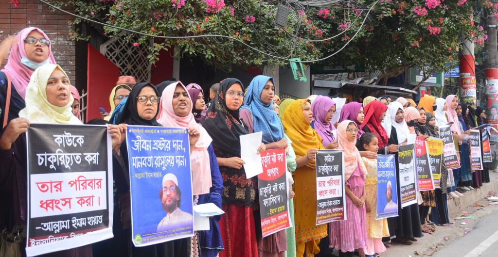 *অন্যায়ভাবে চাকুরীচ্যুত সকলকে অবিলম্বে পুনর্বহাল করার দাবী জানিয়ে ইমাম হায়াত বলেন,* এভাবে স্বৈরাচারী কায়দায় রাষ্ট্রকে জবরদখল করে নাগরিকদের রুটি রুজি ও শিল্প কারখানা অর্থনীতি ধ্বংস করা চরম অন্যায়।