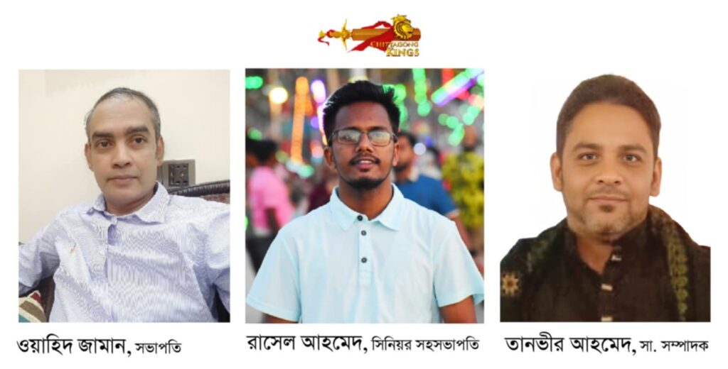বিপিএল'এর বহুল আলোচিত ও চট্টগ্রামের প্রতিনিধিত্বকারী দল " চিটাগাং কিংস " এর সমর্থক গোষ্ঠীর কমিটি ঘোষণা করা হয়েছে। সিনিয়র সাংবাদিক মোঃ ওয়াহিদ জামানকে প্রেসিডেন্ট ও বৈষম্য বিরোধী ছাত্র আন্দোলন কেন্দ্রীয় নির্বাহী কমিটির সদস্য রাসেল আহমেদ'কে সিনিয়র ভাইস প্রেসিডেন্ট, সাংবাদিক তানভীর আহমেদ'কে সেক্রেটারী করে ৮১ সদস্যের এই কমিটি ঘোষণা করা হয়েছে।